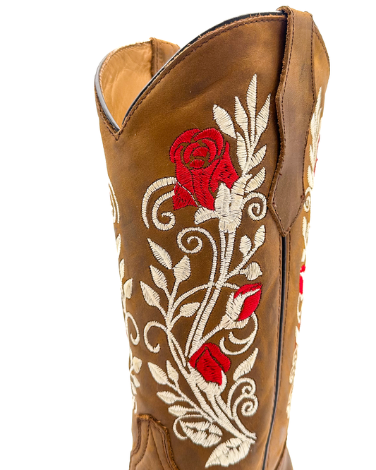 Cowboy Boot Roses Embroidered Brown