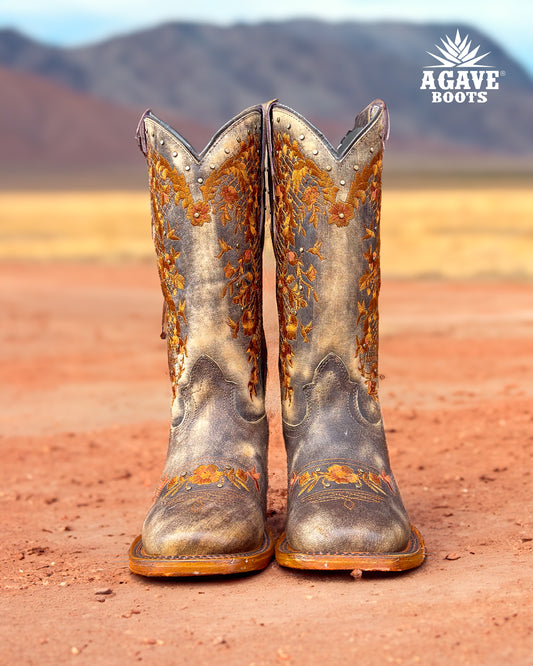 Cowboy Boot Grecas Embroidered Brown